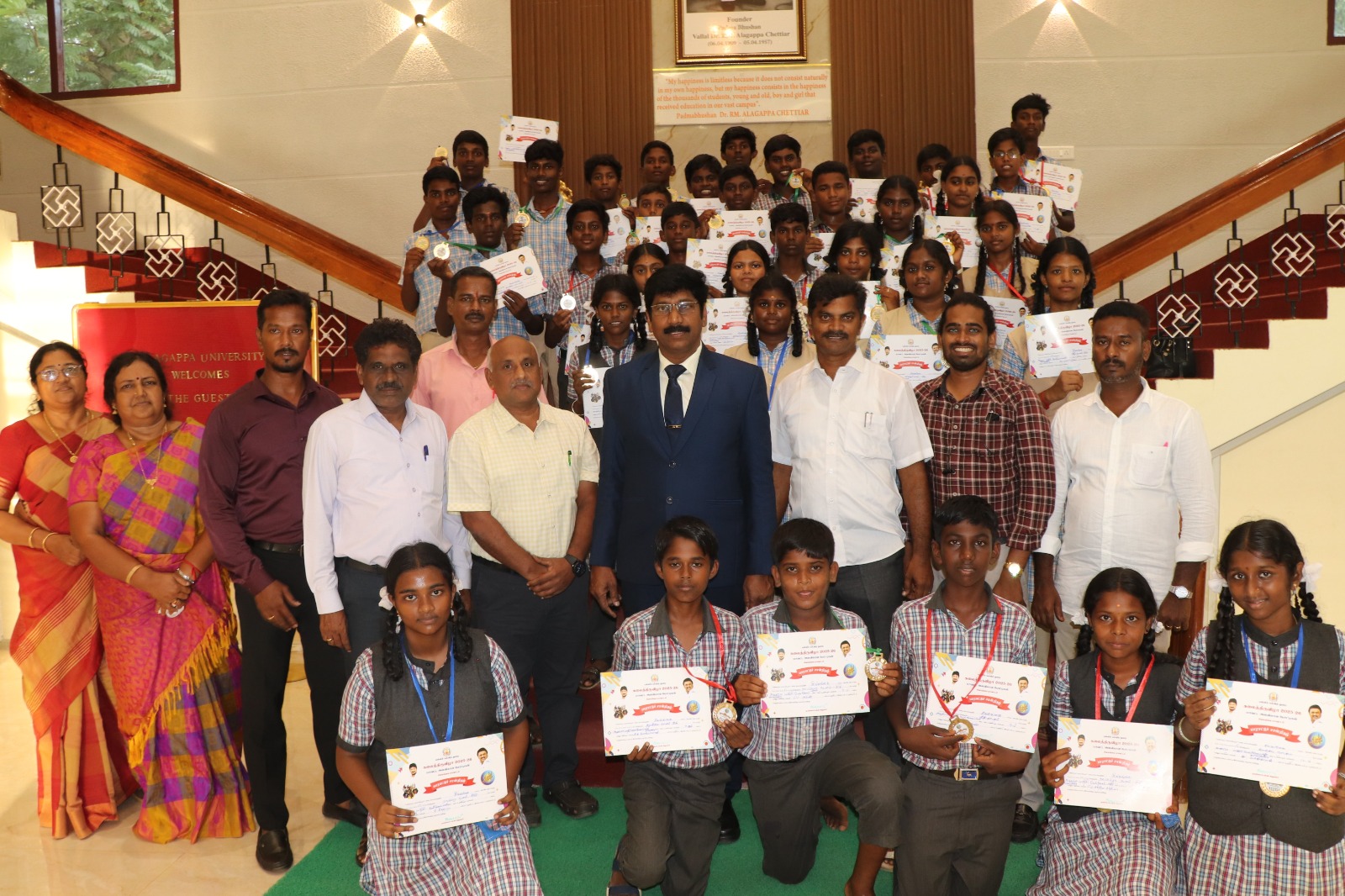 Our school students participated in the Tamil Nadu Government School Education Department's " Kalaithiruvizha 2025", a three-level competition. At the union level, our students competed in 13 sections and excelled in 7 categories, securing first place. The same team proceeded to the district level, where 6 out of 7 students secured first place and qualified for the state-level competition. The district-level winners were felicitated by Honourable Minister for Cooperation, Mr. K R Periyakaruppan, who presented shields and certificates. The winning team was further congratulated by Dr. G. Ravi, Vice-Chancellor of Alagappa University and President of the school management committee, Dr. A. Senthil Rajan, Registrar of Alagappa University and Secretary of the school, and Dr. T. Ramesh, Headmaster,and all teacher's of Alagappa. Model HSS, karaikudi. Congratulations to our dedicated teachers, Mr. Muthupandian, Mr. Balakrishnan, Mrs. Uma Priyanayaki, Mrs. Jegathambal, and Mr. Agnas Prabu Raja, for guiding our students to excellence."