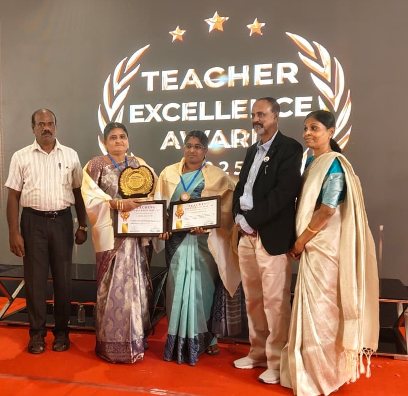 We are proud to share that our dedicated teachers, Mrs. K. Vedhambal and Mrs. P. Tamilselvi, have been honored with the “Teaching Excellence Award 2024–25” by the Padmarajam Institute of Management. Hearty congratulations to our esteemed teachers!