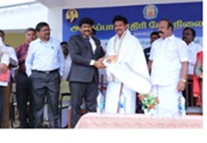 Our school president, Vice Chancellor Alagappa University hounouring the Honourable School Education Minister, Tamilnau and the Honorable Minister of Co-Operation, Tamilnadu