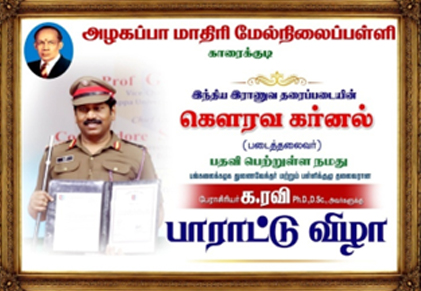 Our school student, M. Ragul (Class XII, Under 19, 70 kg category), has achieved selection to represent Tamil Nadu at the National Level Karate Competition, to be held in Pune, Maharashtra, in January 2026. M. Ragul was congratulated by: - Dr. G. Ravi, Vice-Chancellor of Alagappa University and President of the School Management Committee - Dr. A. Senthil Rajan, Registrar of Alagappa University and Secretary of the School Management Committee - Dr. T. Ramesh, Headmaster - Physical Education Teachers - and the entire teaching faculty for his outstanding achievement in Karate and selection to represent Tamil Nadu at the National Level.